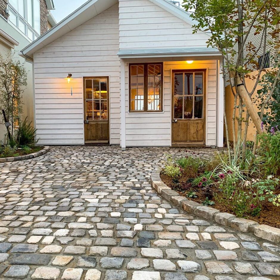 レンガ石畳の施工と他の庭の工作物の作成し
